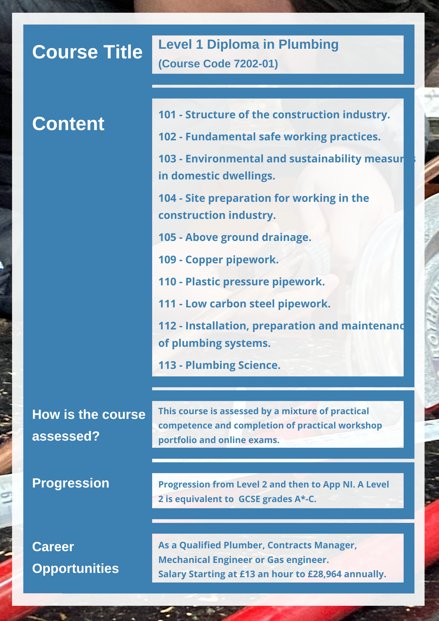 Pre-entry guidance and Advice Plumbing Level 1